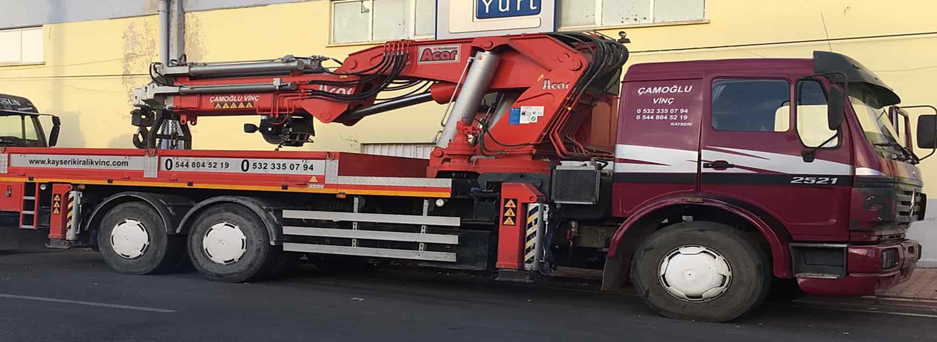 Çamoğlu Vinç İşletmesi, 1980 yılında kurulmuş olup Kayseri ve çevresinde kamyon üzerinde katlanabilir bomlu vinçler, teleskobik ve mobil vinçler kiralama hizmeti sunmaktadır. İşletmemiz, endüstri tesisleri, boru hatları, arıtma tesisleri, alt ve üst yapı inşaatları gibi projelerde vinç kiralama, araç kurtarma, yük indirip kaldırma, tabela ve reklam direkleri montajı, fabrika bacalarının yerleştirilmesi gibi işlemleri başarıyla gerçekleştirmektedir. Deneyimli personeli ve güvenilir ekipmanlarıyla Çamoğlu Vinç İşletmesi, Kayseri ve İç Anadolu bölgesindeki müşterilerine kesintisiz hizmet sunmaktan memnuniyet duymaktadır.Kayseri Vinç